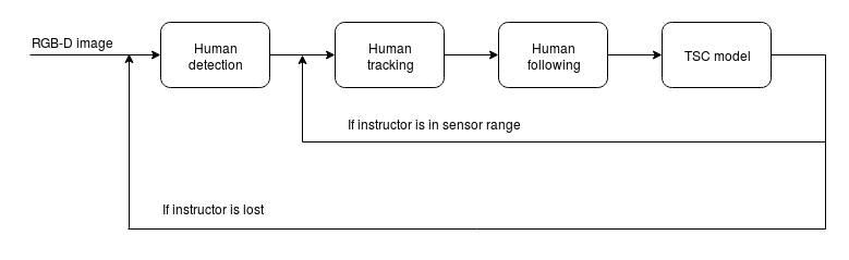 The number of service robots increases every year and thus, service robotics has become a popular research topic among researchers. As a core ability, a service robot needs to sense human presence and follow the instructor along the environment. The robot needs to adapt its movement in order not to crash any obstacles or people along the way. While moving, the robot should be able to distinguish different places (e.g rooms in an indoor application) by observing visual properties. Throughout this study, we aim to build a mobile robot that have these abilities. The robot will use RGB-D sensors for environmental awareness and human tracking. In parallel, the robot will employ the topological spatial cognition model (Karaoguz & Bozma, 2016). As such, place learning will be accomplished as guided by the human.
